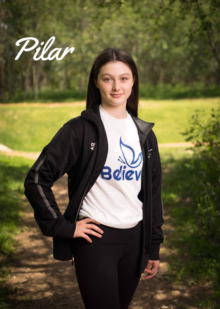 Pilar is 15 years old and is from Edmonton, Alberta. She has been swimming ever since she was 5. She is a competitive swimmer with Triton’s Swimming in Leduc, the highest group within its ranks (Performance Group).